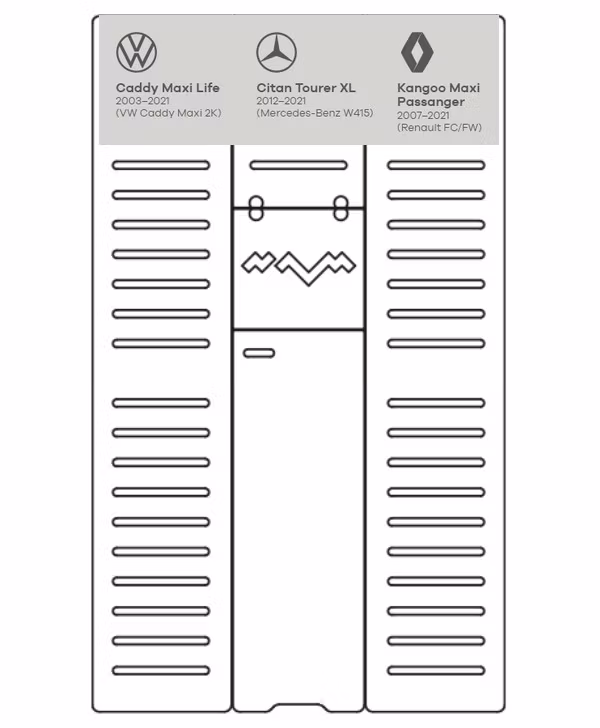 Passer til: VW Caddy Maxi Life, MB Citan Tourer XL , Renault Maxi Passenger