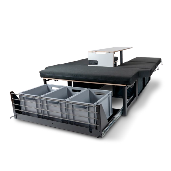 Visu Sitka 3 Plus er en mobil og flyttbar sove- og campingmodul utviklet for mellomstore varebiler. Modulen byr på rikelig med oppbevaringsplass (med lys), enten i praktiske bagger som er lett tilgjengelige fra innsiden av bilen, eller i en uttrekkbar bakskuff.